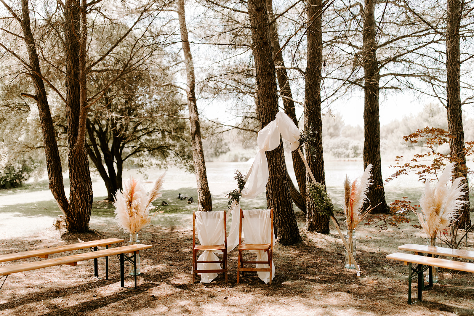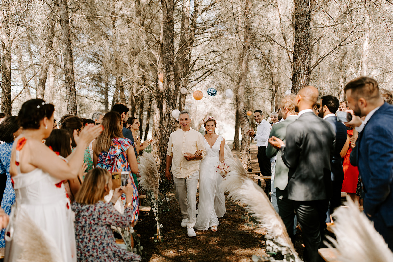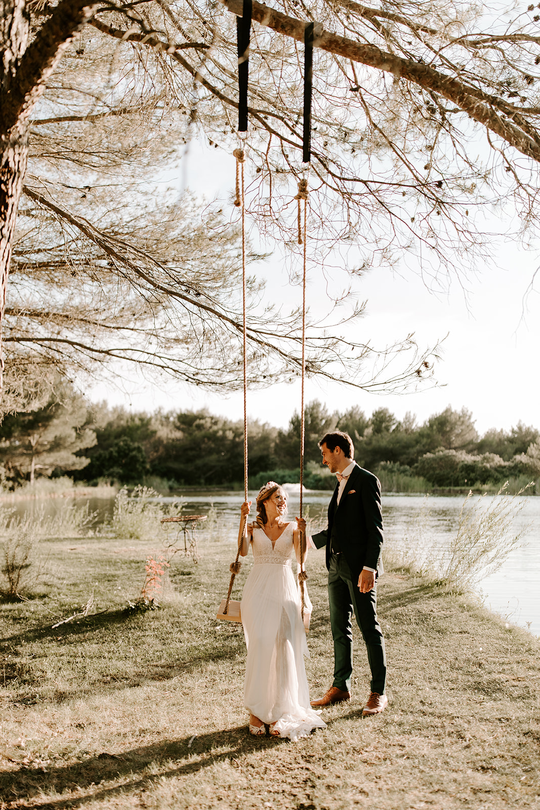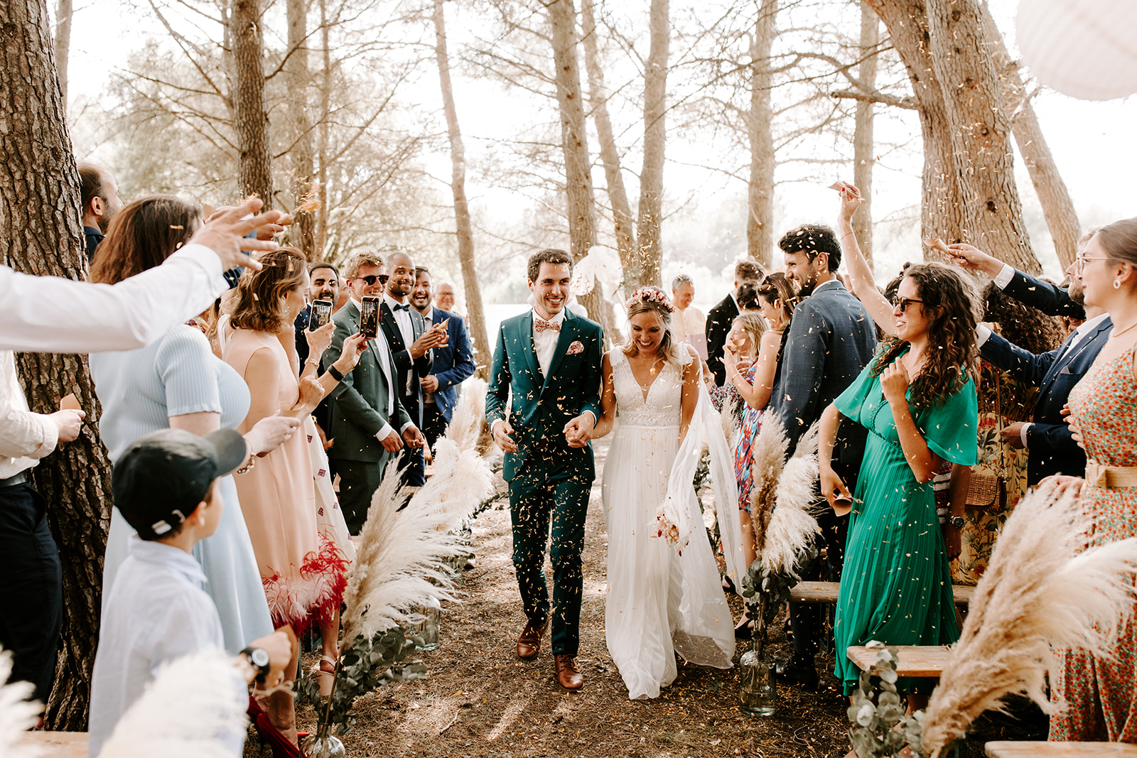 La cérémonie laïque, empreinte de douceur et de poésie, s’est déroulée dans un cadre naturel sublime, où chaque détail respirait le style bohème. Les émotions étaient au rendez-vous : des rires, des larmes de joie et des mots d’amour échangés sous un ciel provençal.