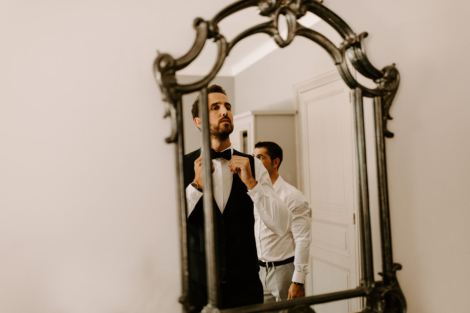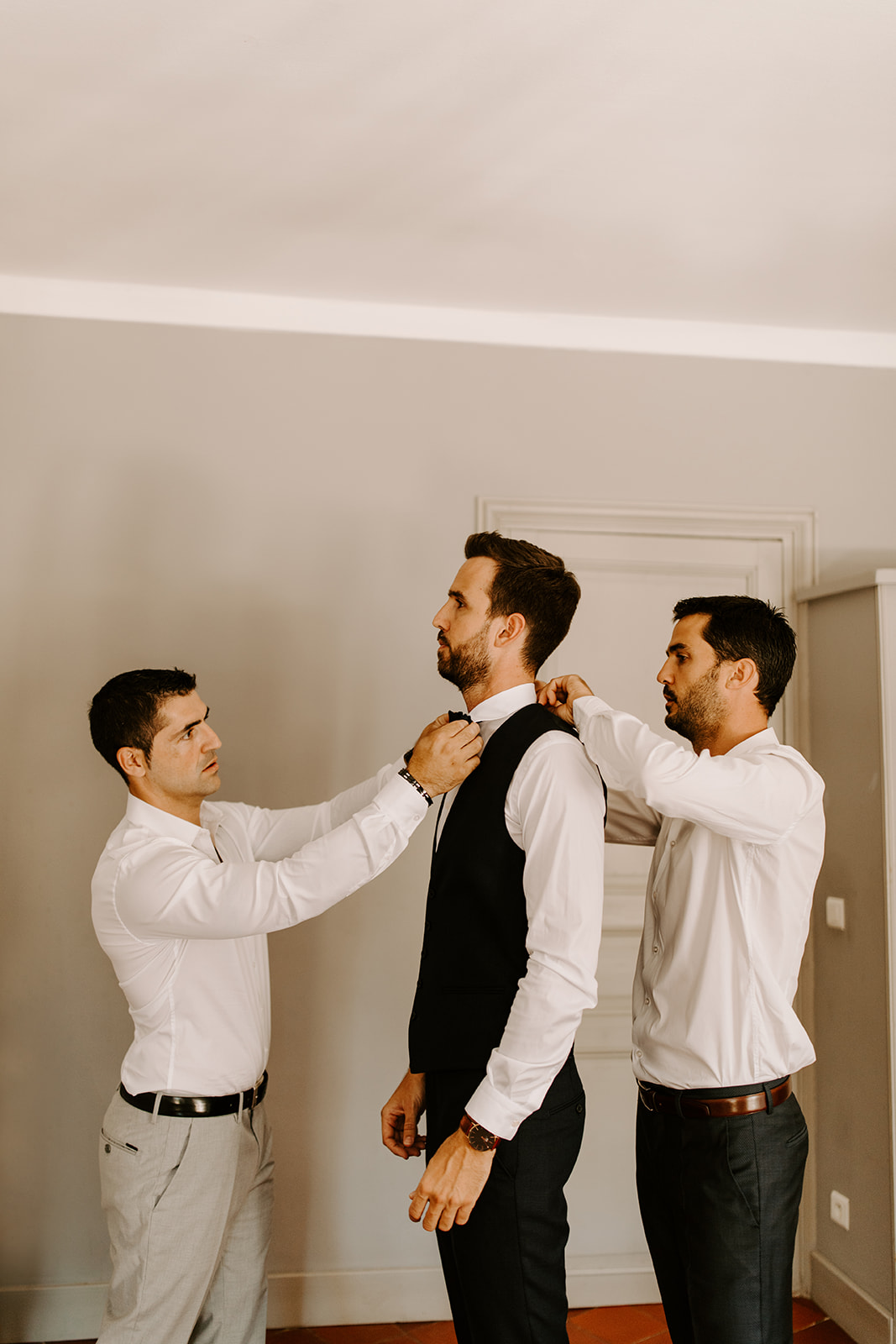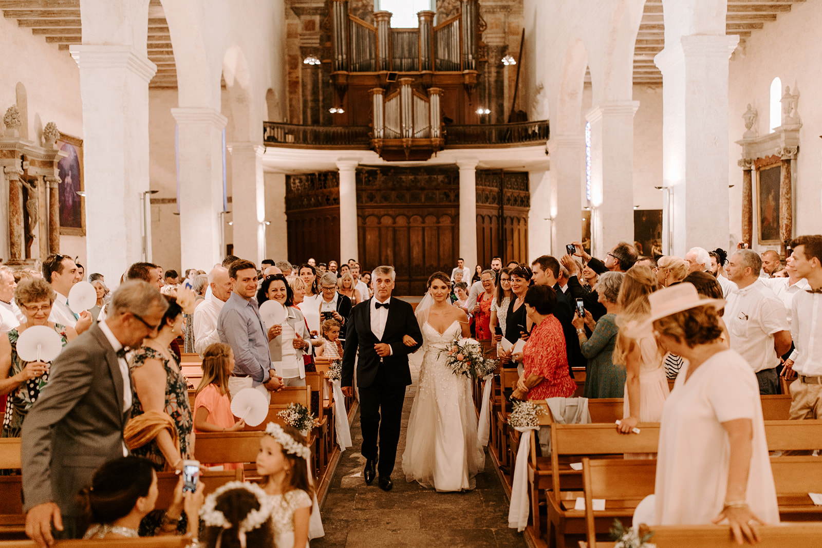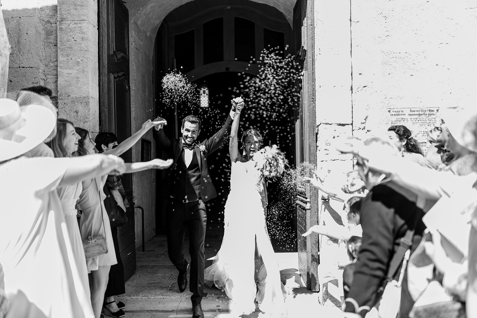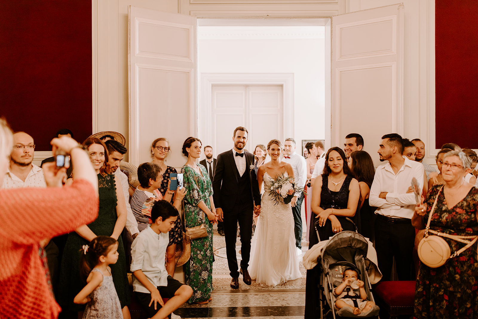 La journée a commencé par des préparatifs empreints de douceur et de complicité. Après un moment de préparation intime, Emmanuelle et Thomas se sont retrouvés pour une cérémonie civile à la mairie de Béziers, entourés de leurs proches. Le lieu, tout comme leur union, respire le romantisme, et c’est avec des sourires sincères que le couple a échangé ses vœux.